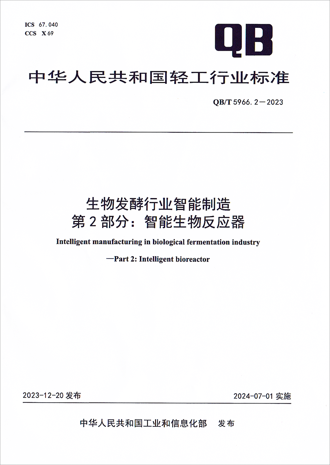 东方生工参与起草制订的中华人民共和国轻工行业标准QB/T 5966.2—2023《生物发酵行业智能制造 第2部分:智能生物反应器》已正式发布,将于2024年7月1日开始实施。