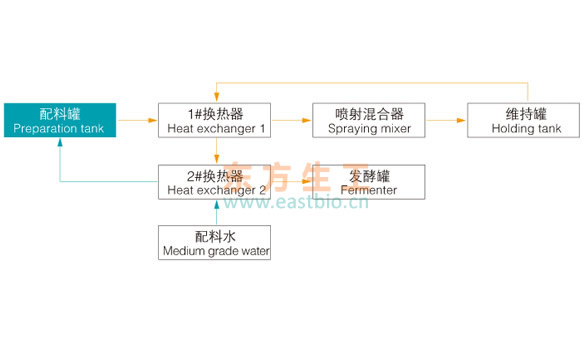 将培养基连续消毒工艺应用到大规模发酵中是十分明智的选择。培养基连消系统主要由喷射加热器、板式换热器、维持罐等组成,培养液经喷射加热器瞬时高温加热,进入维持罐保持一定的灭菌时间,然后通过串联的板式换热器进行冷却,以冷的培养液做冷却剂,这样既冷却了热培养液又预热了冷培养液。